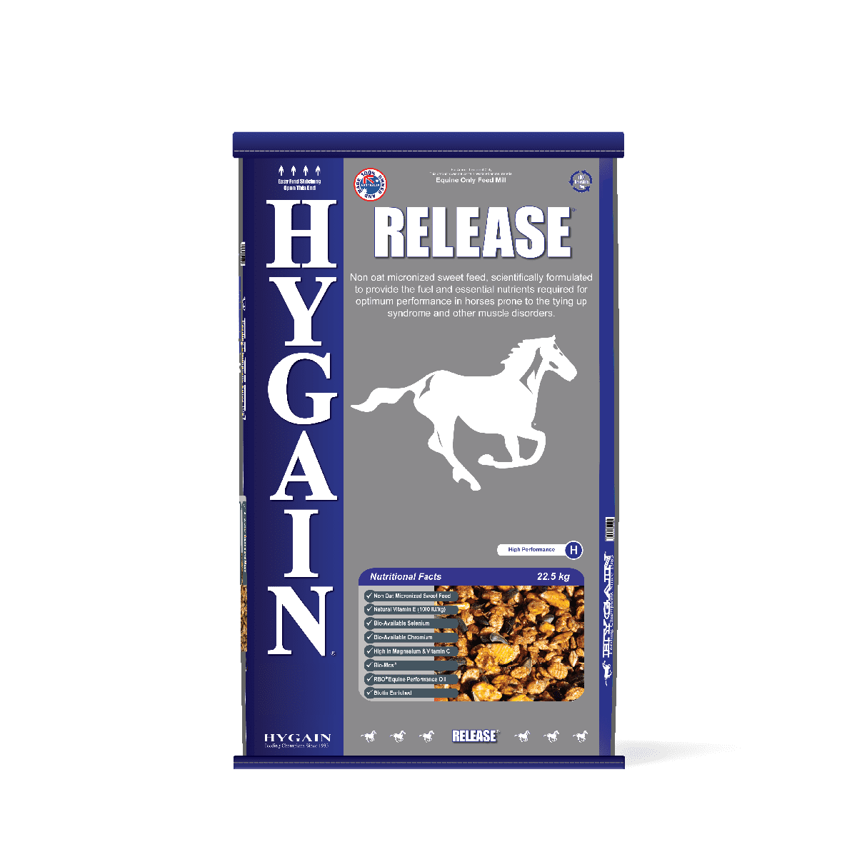Non oat micronized sweet feed, scientifically formulated to provide the fuel and essential nutrients required for optimum performance in horses prone to the tying up syndrome and other muscle disorders.